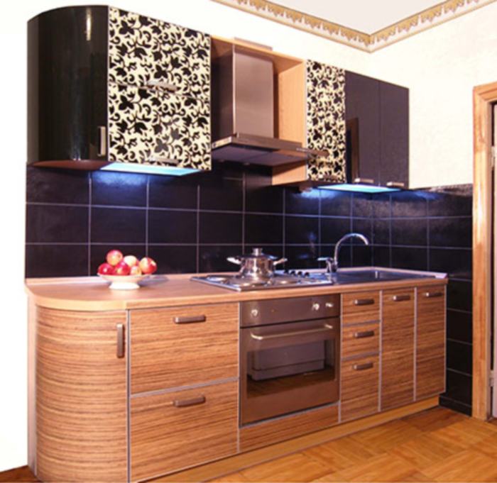 Продукция компании соответствует последним тенденциям дизайна и отличается надежностью и долгим сроком эксплуатации. Для изготовления кухонной мебели используются только качественные материалы: ДСП ламинированная, МДФ пленочный или крашенный, пластик.