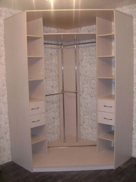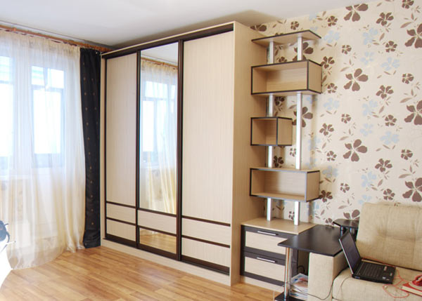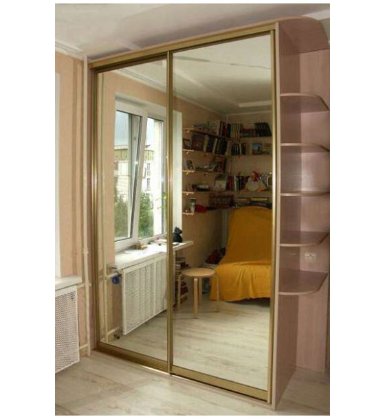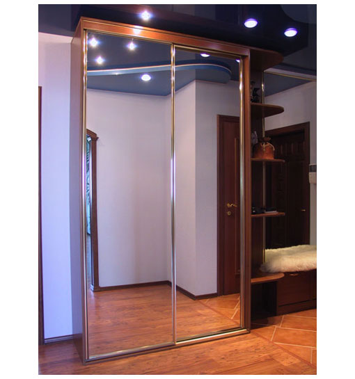 Зеркальная поверхность створок. Полки, перекладина для вешалок.