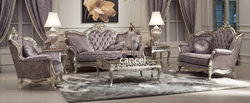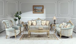 Обивка в пастельных тонах. Светлый резной каркас в классическом стиле.