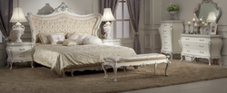 Округлая мягкая спинка. Белый резной каркас с серебрением.