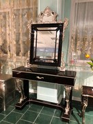 Стол в черном цвете с серебристым декором.