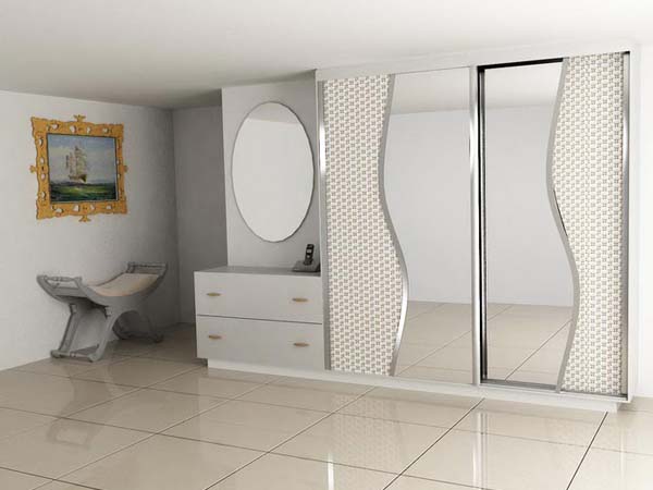 Шкаф-купе с радиусными полками и фигурным зеркалом