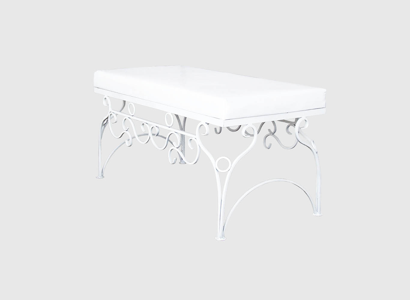Элегантная скамья с ажурной ковкой без спинки и со съемным мягким пуфом.