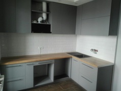 Угловая кухня в сером матовом цвете