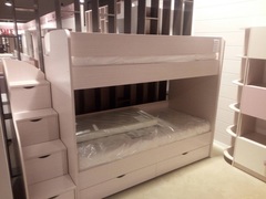 В нижнем ярусе предусмотрены выдвижные ящики, как и в ступеньках лестницы.