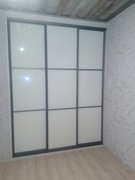 Шкаф с черным металлическим профилем и стеклянными вставками. Изготавливается по индивидуальным размерам.