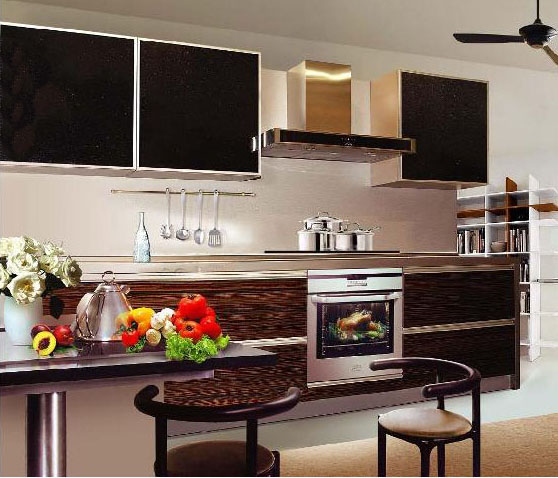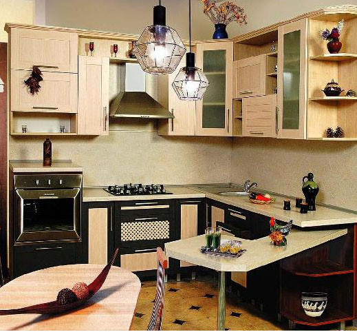 В производстве используется большое количество отделочных материалов, комплектующих, фурнитуры и аксессуаров, чтобы кухня отвечала современным запросам. Для изготовления кухонной мебели берутся только качественные материалы: ДСП ламинированная, МДФ крашенный или пленочный, массив, шпон.