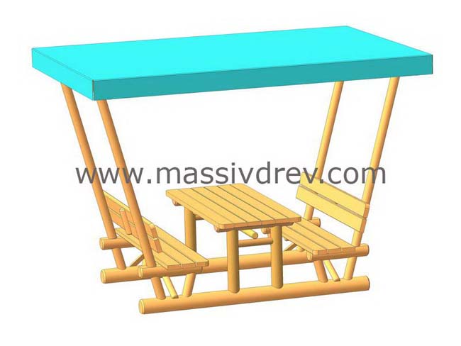 Стол-скамья с двускатным навесом «Оазис-3»