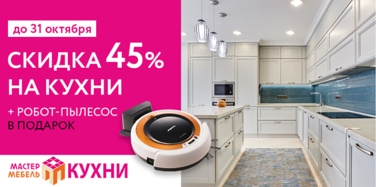 Каждый месяц в салонах Мастер Мебель проводятся различные акции и скидки на определенные модели кухонь, а также мы радуем наших клиентов полезными подарками.