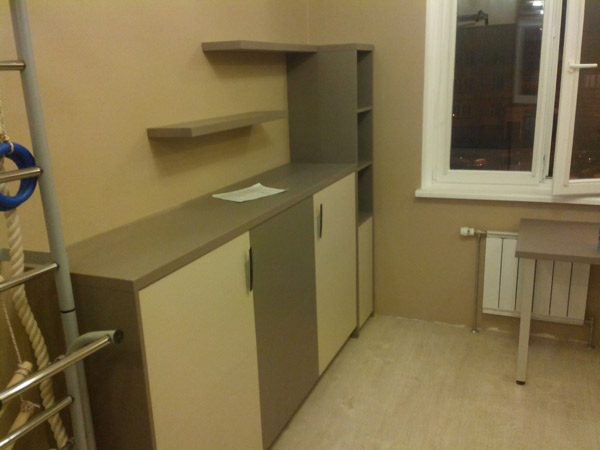Вверху три закрытых ящика и две открытых ниши.