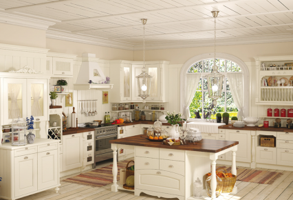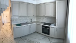 Исполнена в классическом стиле. Ниши для встраиваемой техники.