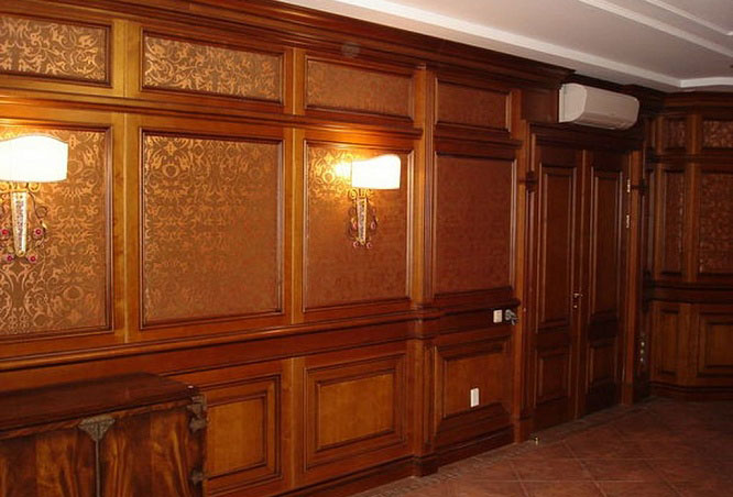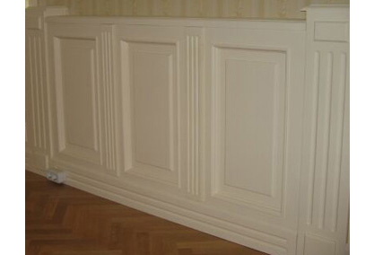 Панели из массива дуба или ясеня в ассортименте. Светлоокрашенный резной фасад с пилястрами.