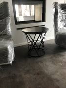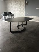 Опоры в темном цвете, столешница в сочетании темного и белого цвета.