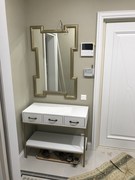 Мягкая обивка со стяжкой. Компактное вертикальное зеркало.