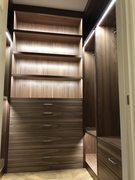 Большое количество полок различных размеров. Присутствуют штанги для одежды.