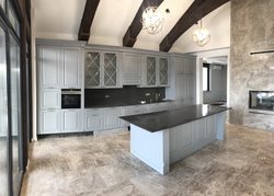 Встроенная подсветка. Нейтральный серый цвет фасадов.