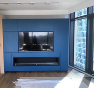 Просторная ниша для размещения телевизора. Стеллажи с вместительными полками.