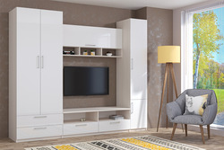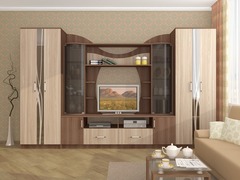 Комментарий: Заказали стенку "Олимп М08". Пришла мгновенно на следующий день. Приятный водитель. Очень аккуратно запакована. Собрали без вопросов, все детали совпали. Маленькая, но оказалась очень даже вместительной. Один минус, но это для конструкторов-производителей мебели-очень низкие ножки, стоит почти на полу. Но выход нашли-купили пластмассовые регулирующиеся ножки и прикрутили к стенке. Вид стал совсем другой. очень нравится!!! Спасибо.