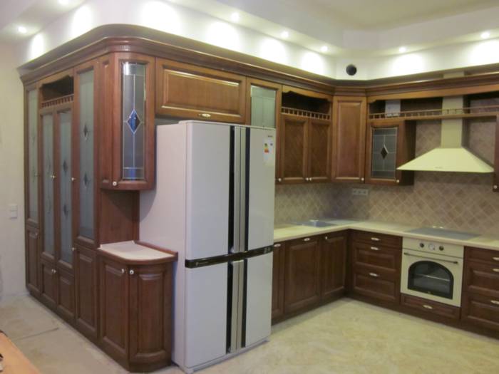 В ассортименте компании и классическая кухня "Надежда" из массива и шпонированной ДСП, и кухни в стиле модерн и hi-tech из ярких современных материалов (алюминий, МДФ крашеный и пленочный, пластик).