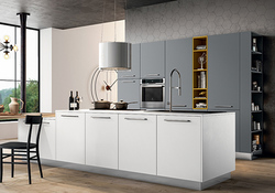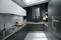Серо-белая П-образная кухня