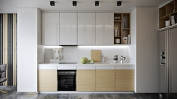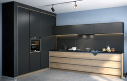 Линейная кухня в комбинированных фасадах без ручек