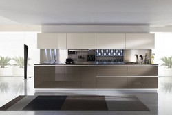 Прямая глянцевая кухня с фасадами без ручек