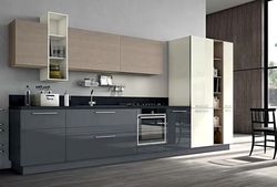 Прямая кухня с элегантными глянцевыми фасадами