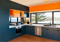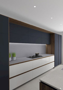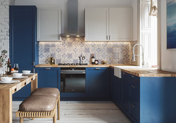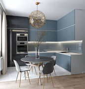 Цвет фасадов: синий. Место для приема пищи.