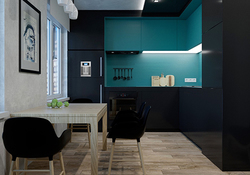 Современная кухня с ярким бирюзовым центральным акцентом