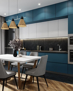 Кухня комбинированная глубокая бирюза с белым