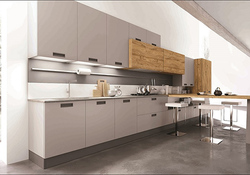 Стильная прямая кухня с комбинированными фасадами