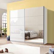Стильный двухдверный шкаф-купе с белым глянцевым фасадом