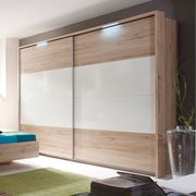 Стильный линейный шкаф-купе с древесным дизайном