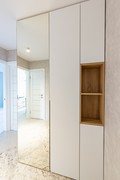 Встроенный линейный шкаф-купе белого цвета с зеркалом