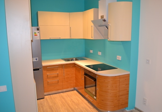 Радиусный фасад под дерево. Светлые столешницы.