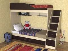 Кровать чердак №15 со ступеньками и выдвижными ящиками