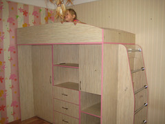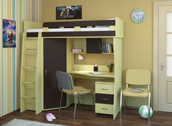 Кровать-чердак №7 с платяным шкафом и лестницей