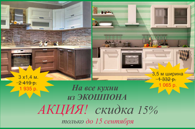 Мы готовы предложить кухню на любой бюджет начиная от экономичного варианта из недорогой фурнитуры и фасадов ДСП (например кухня 1,8 м вам обойдется в 380 бел.руб.) до изделий премиум класса с фасадами из массива дерева. Есть и сбалансированные средние варианты с использованием современных износоустойчивых и дизайнерских материалов таких как ПВХ, Экошпон, Пластик. Все корпуса и фасады изготавливаются в заводских условиях на высотехнологическом оборудовании. Срок исполнения наших заказов от 15 до 30 календарных дней. Гарантируем вам индивидуальный подход и гибкое ценообразование. Более подробную информацию смотрите на нашем сайте.