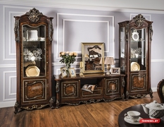 Декоративные элементы, фасады, накладки покрыты золотой, темной патиной и матовым лаком.