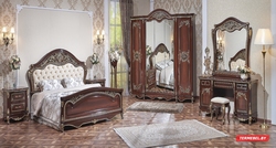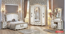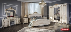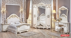 6-ти дверный шкаф, кровать, тумба прикроватная, туалетный стол, зеркало, пуф.