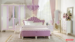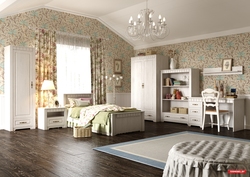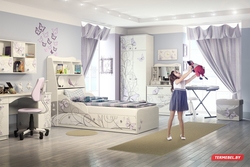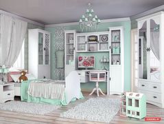 Набор детской мебели в комнату для девочки. Исполнена в спокойных тонах с декором.