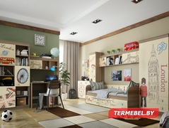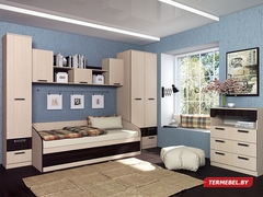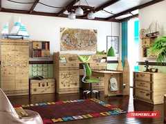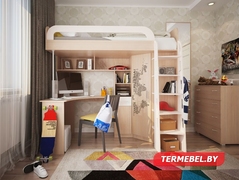 Состоит из: комплекса со столом, шкафом для одежды, спальным местом, полками.