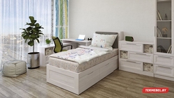 Спальное место: 900х2000 мм. Каркас: ЛДСП 16 и 22 мм. Фасад: МДФ.