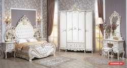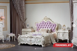 Изящный набор в спальную комнату. Фасады в фрезеровкой. Золотая патина.