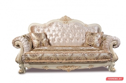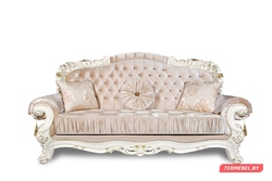 Резной декор кремового цвета. Размер дивана: 2430х950х1250 мм.