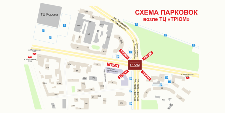 «Трюм» находится в самом центер Минска и имеет всю необходимую инфраструктуру для комфортной работы сотрудников и отдыха посетителей. Рядом находится станция метро, крупный гиппермаркет, несколько заведений общепита и множество стоянок для тех, кто приехал за мебелью на своем авто.