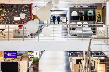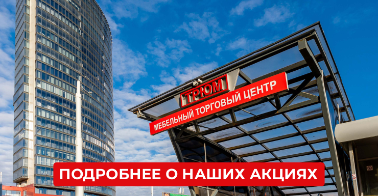 В магазинах торгового центра постоянно дествуют различные скидки и акции. Также мебельный центр устраивает единые дни скидок, когда посетитель может выбрать понравившийся товар в любом магазине и получить его по приятной сниженной цене. Обо всех последних акциях можно узнать на официальном сайте.