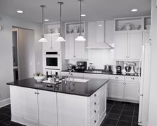 Столешницы серого цвета, корпус и фасады черные.