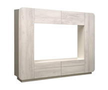 Размеры: 2130х350х1680 мм. Скругленные фасады МДФ. Широкая ниша для ТВ.
