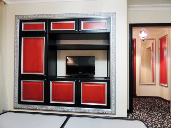 При отделке предметов интерьера используются лучшие лакокрасочные материалы и финишные покрытия, защищающие ее от истирания, влаги, изменения температуры.